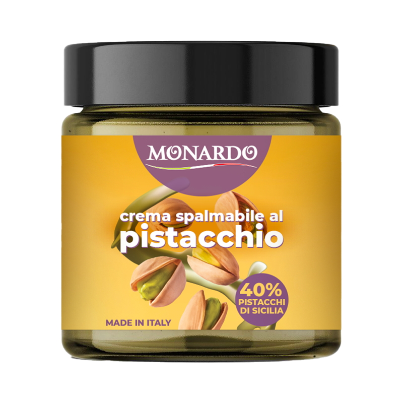 Jemný a lahodný pistáciový krém se 40 % pistácií od italské značky Dolciaria Monardo potěší všechny milovníky výrazné oříškové chuti. Krémová konzistence, plná pistáciová chuť a dokonale vyvážená sladkost z něj dělají ideální volbu pro každodenní použití i speciální chvíle.