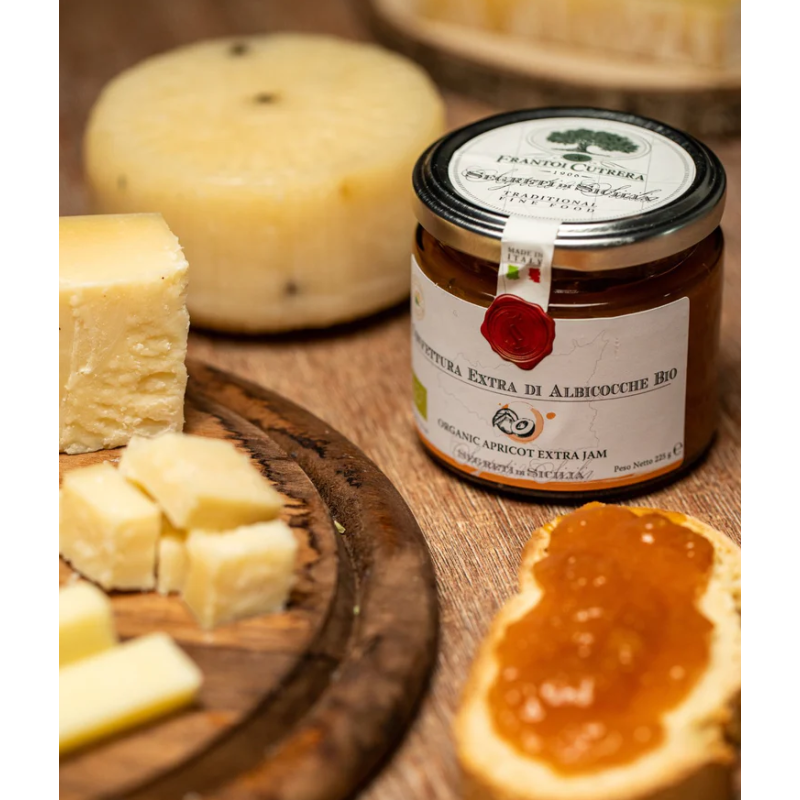 Tradiční sicilská BIO extra džem z vyzrálých meruněk, připravovaný šetrným vařením při nízké teplotě, které zachovává přirozenou chuť, barvu i aroma ovoce. Díky vysokému podílu ovoce (85%) nabízí plnou, sladkou a harmonickou chuť typickou pro kvalitní středomořské meruňky.